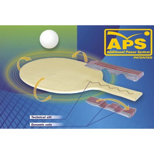 Patentiertes "Additional Power System" (APS) für mehr Power und mehr Spin, da der Griff einen Zick-Zack-Schnitt und Öffnungen an der Seite des Holzgriffs hat.
