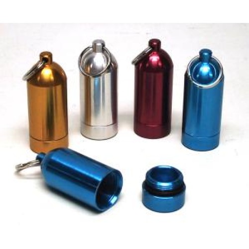 Schlüsselanhänger Mini-tank alu Sortiment Farben Innen platz für ersatz Gummi O-Ringen zum tauchen.