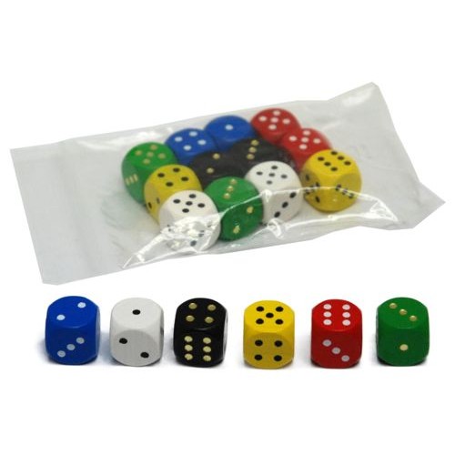 Holzwürfel 6 Farben sortiert 16 mm, Buche.