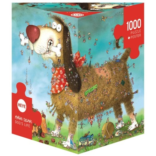 Puzzle, Dog's Life, 1000 Teile. Zeichner Marino Degano. Verpackt in Dreieckschachtel. Heye Nr. 29491