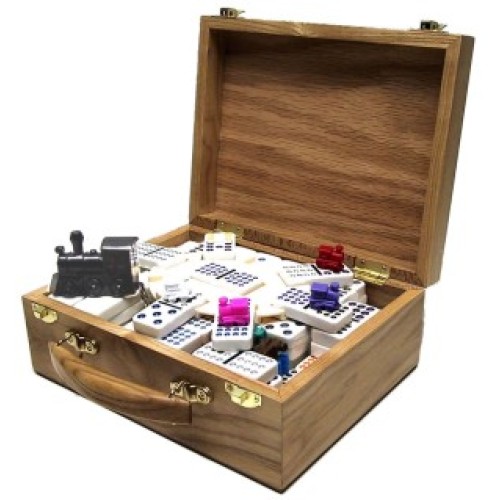 Domino Mexican-Train Doppelt 15 in Holz Koffer.