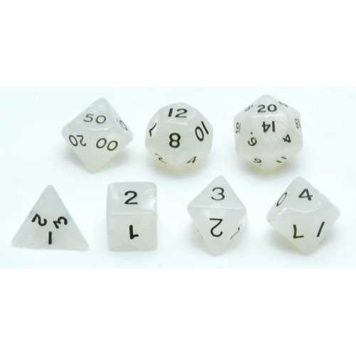 Würfel-Set 7 Stück sortiert, weiß marmoriert/Perlmutt.