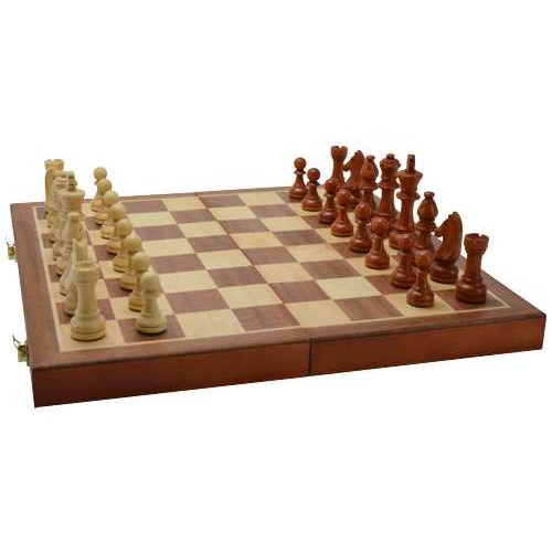 Schach-Kassette Holz faltbar Intarsien 40 cm.