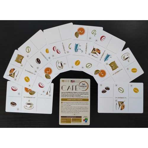 The Expresso expansion contains 8 cards with extra attributes, such as being able to place 2 coffee beans, produce a wild coffee bean and bonus points for the nata cake,