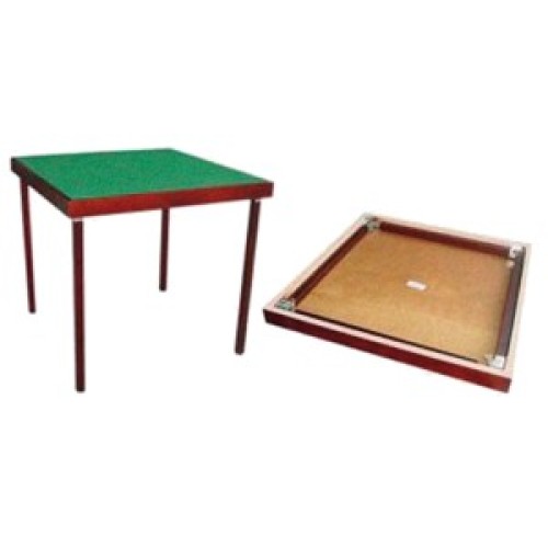 Bridge Tisch. Abmessung 79 x 79 x 73 cm. Holz braun lakiert, bekleidet mit grünes Filzstoff. Beine einklappbar.