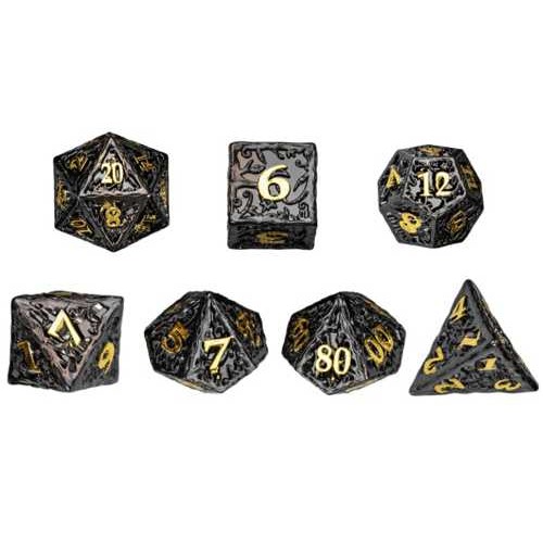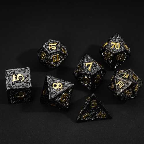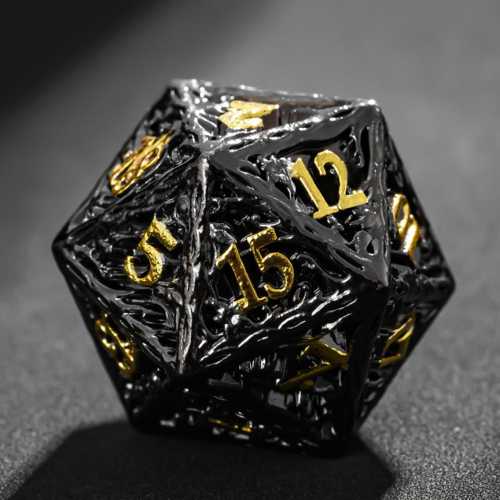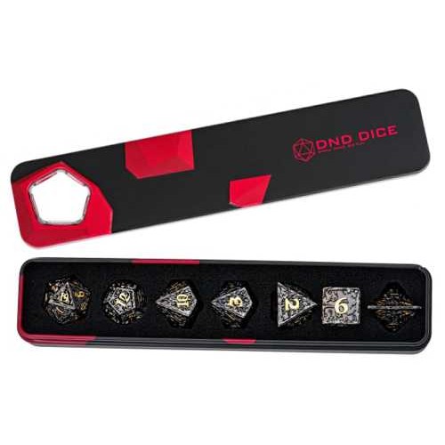 Verbessere dein D&D-Spiel mit diesem Metall-Würfelset Schwarz/Gold. Das elegante schwarze Finish mit goldenen Details verleiht diesen Würfeln einen kraftvollen und stilvollen Look, der an jedem Spieltisch auffällt.